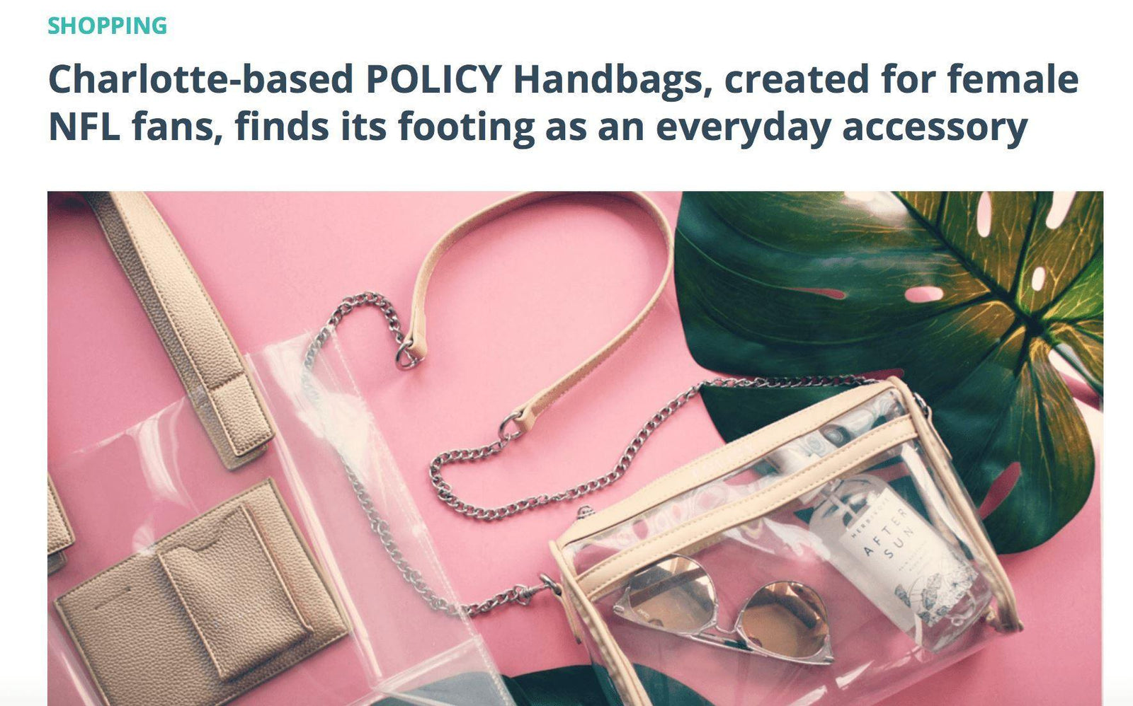 • Charlotte-based POLICY Handbags, created for female NFL fans, finds its footing as an everyday accessory